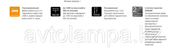 Этот перезаряжаемый подкапотный фонарь от OSRAM идеально подходит для профессионального и личного использования. Благодаря двум функциям освещения до 1200 лм (высокий), 600 лм (низкий) и световой полосе, которая может вращаться на 360º, этот осветительный прибор предлагает различные варианты регулировки для различных задач. Перезаряжаемый подкапотный фонарь LEDinspect особенно впечатляет своей большой гибкостью - его можно удлинить до 1,80 м, и поэтому он может обеспечить оптимальное освещение в моторном отсеке в широком диапазоне транспортных средств. Аккумуляторная батарея обеспечивает до 2 часов работы на высокой мощности или до 4,5 часов на низкой мощности, а время зарядки составляет всего около 3 часов, этот фонарь OSRAM также быстро готов к использованию снова.