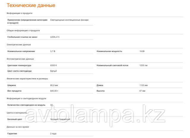 | Код запчасти | LEDIL415 |