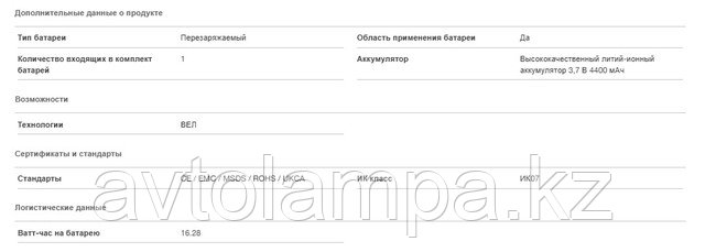 | Цветовая температура | 6500K |